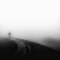 This series of seven black-and-white photographs captures city visual motifs, living creatures, and solitary figures moving through the shifting mist, immersed in their own worlds. These are not portraits of individuals but rather studies of presence and transience. Stripped of unnecessary detail, the minimalist compositions emphasize human figures against vast, empty surroundings. Anonymous and detached, they blend into the fog, reinforcing the impermanence of human movement within an ever-present, unchanging landscape.